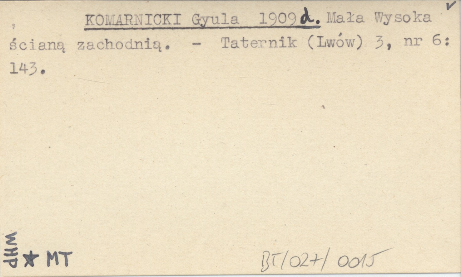 KOMARNICKI Gyula 1909 d Mała Wysoka ścianą zachodnią.