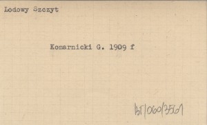 KOMARNICKI Gyula 1909 f Lodowy. Pierwsze przejście grani północno-zachodniej z przejściem Wielkiej Sobkowej Turni (II wyjście), Środkowej (I wyjście) i Małej (I wyjście).