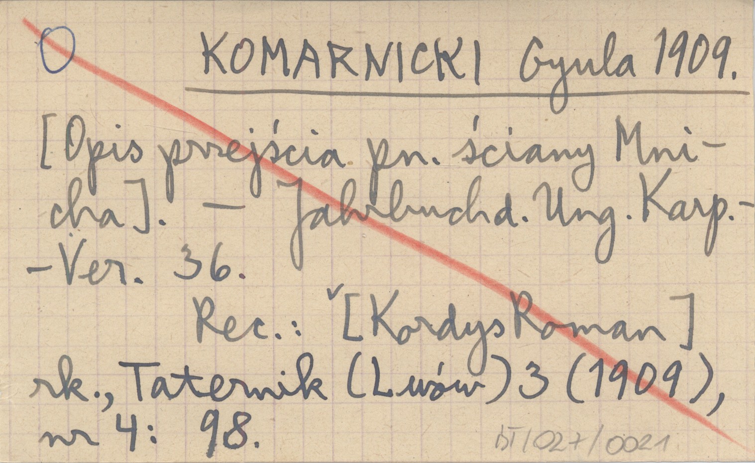 Jahrbuch d. Ung. Karp.-Vereins, 36. REC: [KORDYS Roman] rk., Taternik (Lwów) 3 (1909), nr 4: 98