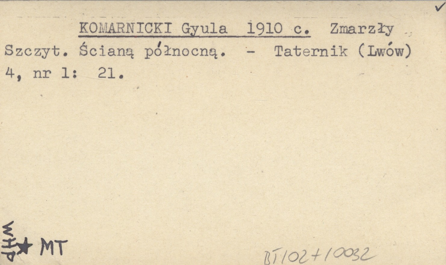 KOMARNICKI Gyula 1910 c Zmarzły Szczyt. Ścianą północną.