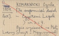 KOMARNICKI Gyula 1909 [Ze wspomnień dwóch lat].