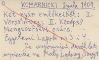 KOMARNICKI Gy. 1909 Két nyár emlékeiből (Középső Menguszfalvi cs.).