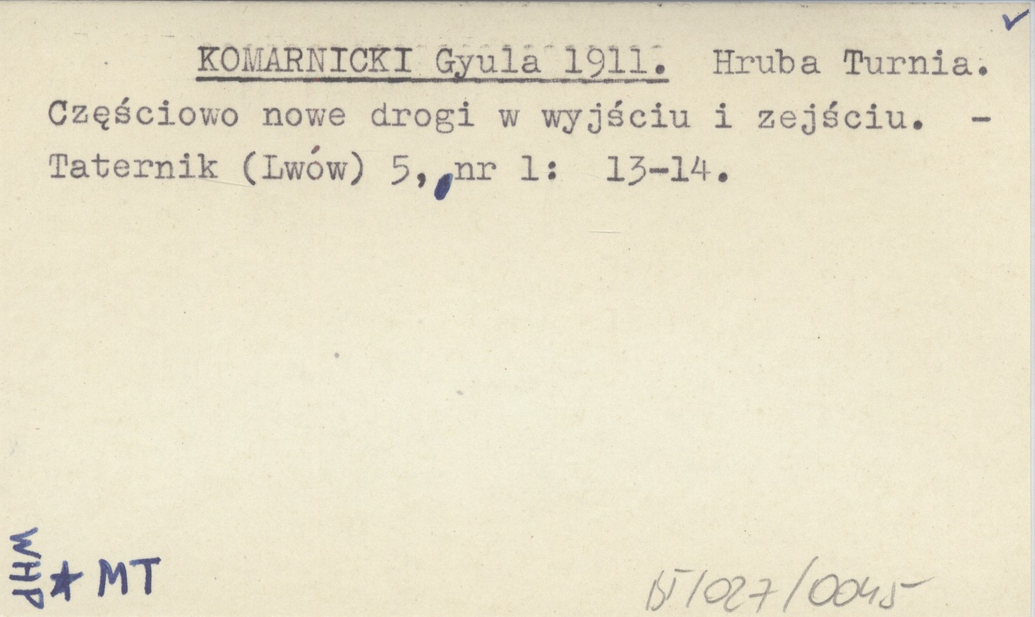 KOMARNICKI Gyula 1911 Hruba Turnia. Częściowo nowe drogi w wyjściu i zejściu.