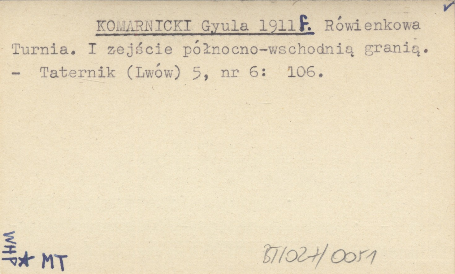 KOMARNICKI Gyula 1911 f Rówienkowa Turnia. I zejście północno-wschodnią granią.