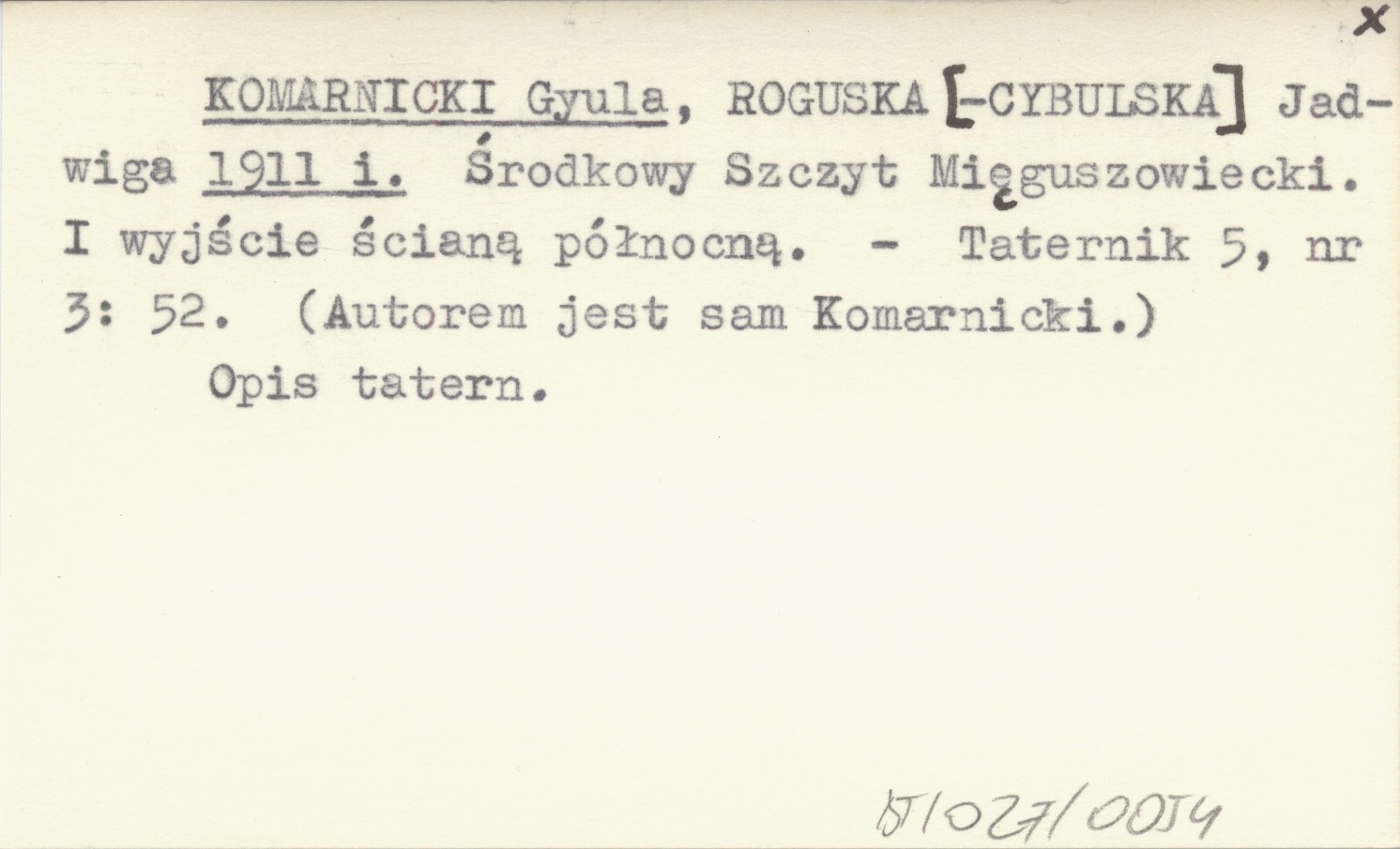 KOMARNICKI Gyula ROGUSKA [-CYBULSKA], Jadwiga. ; 1911 i Środkowy Szczyt Mięguszowiecki. I wyjście ścianą północną.