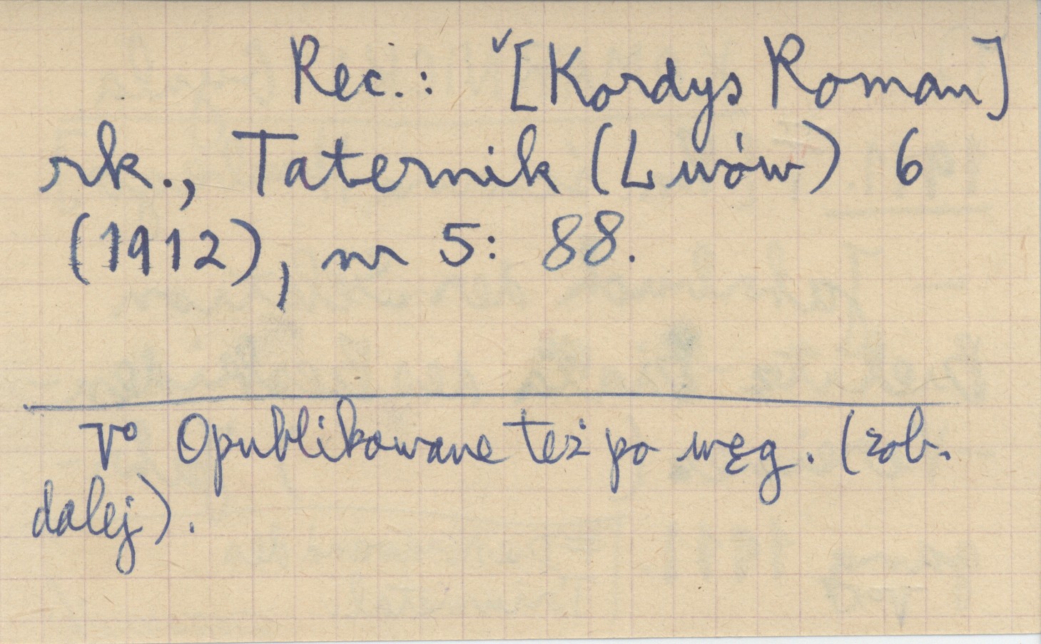 Jahrbuch der Sektion Bielitz-Biala des Beskiden-Vereines, Opublikowane też po węg. (zob. dalej). REC: [KORDYS Roman] rk., Taternik (Lwów) 6 (1912), nr 5: 88