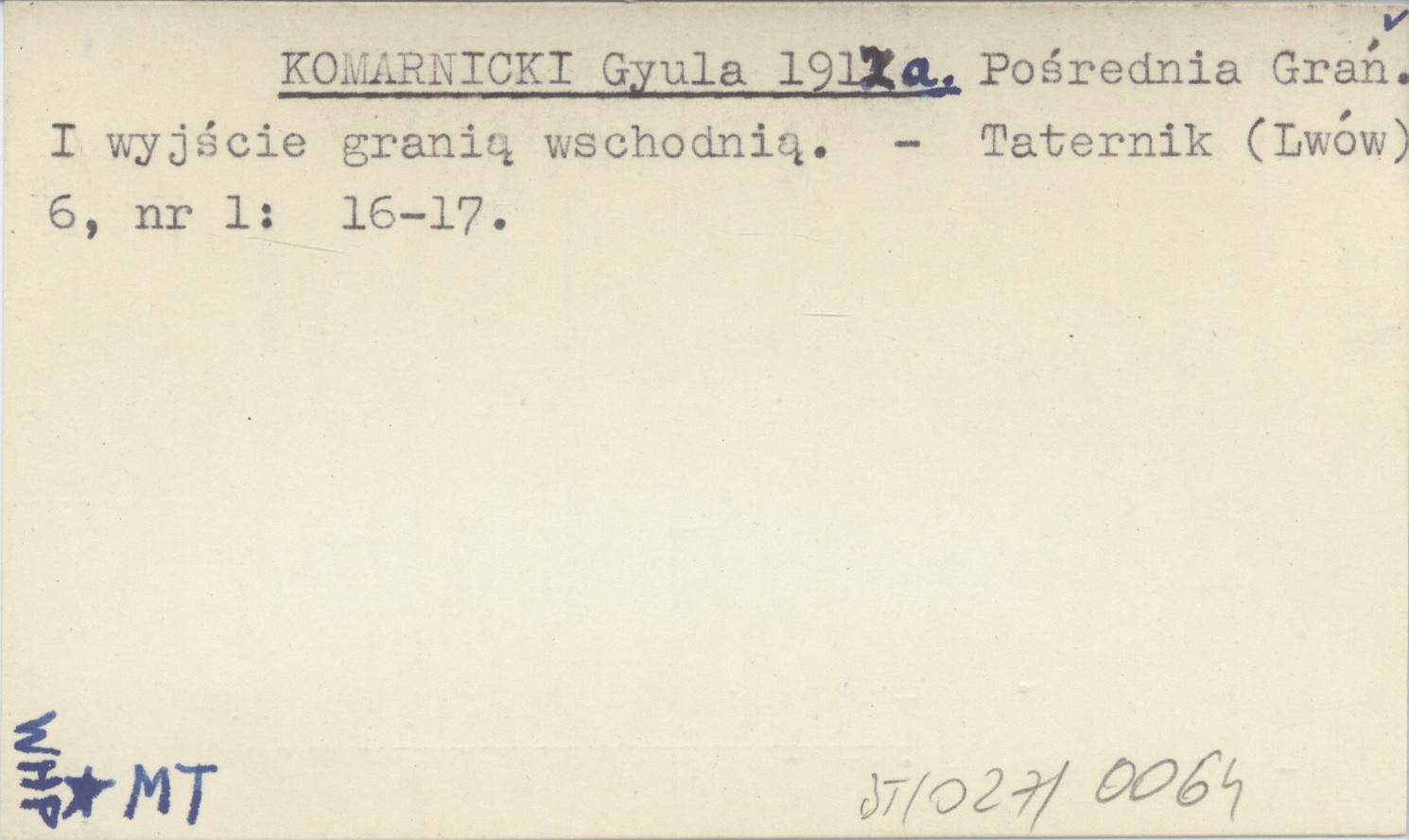KOMARNICKI Gyula 1912 a Pośrednia Grań. I wyjście granią wschodnią.