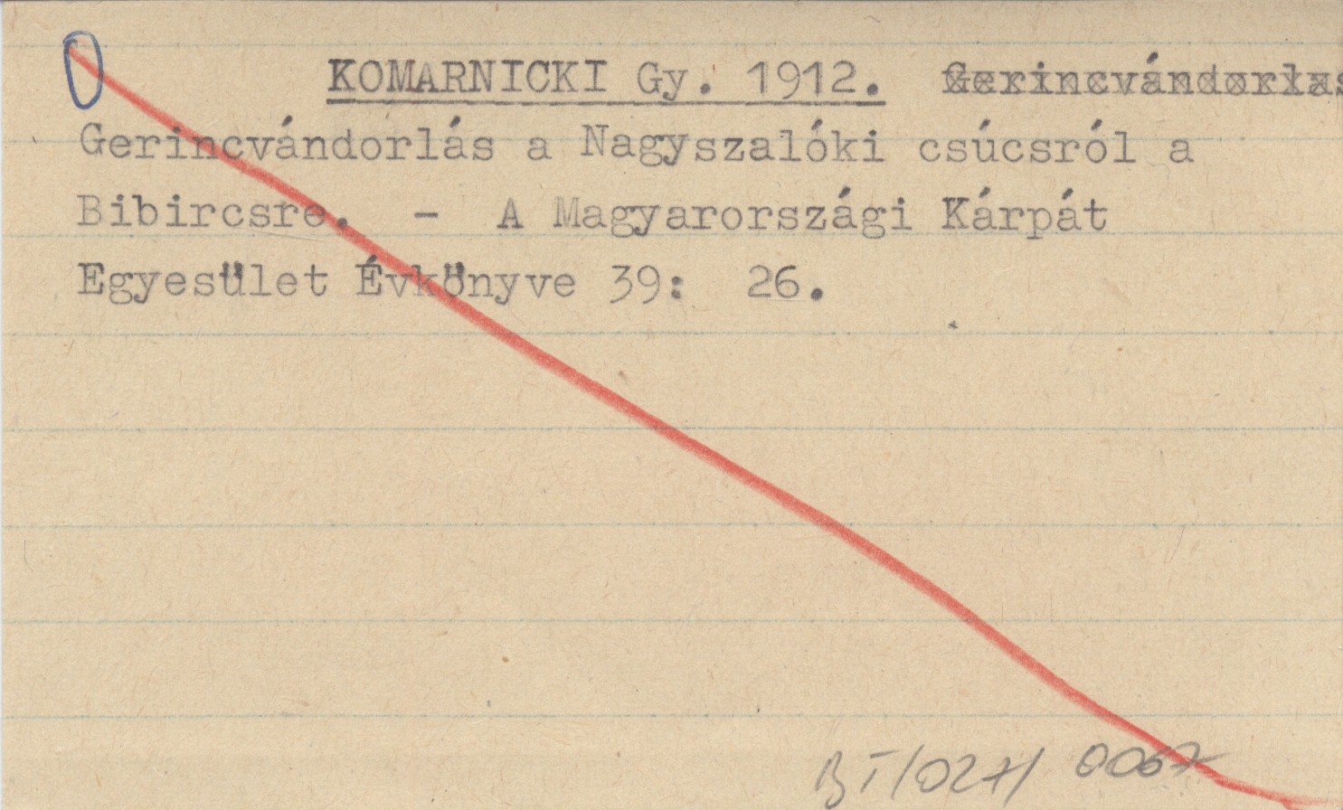 KOMARNICKI Gy. 1912 Gerincvándorlás a Nagyszalóki csúcsról a Bibircsre.