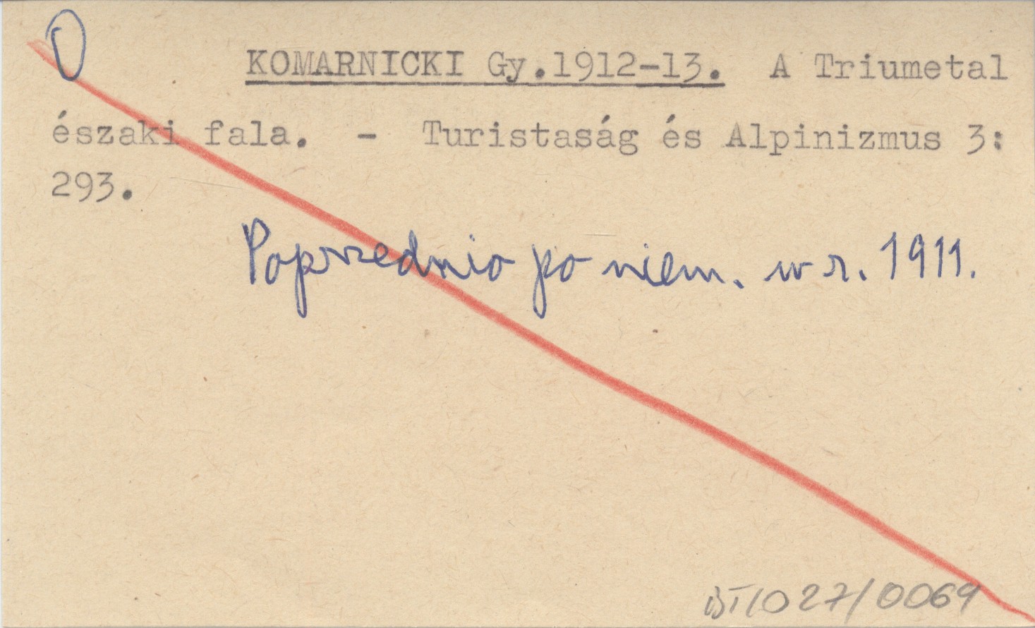 Turistaság és Alpinizmus, 3: 293. Poprzednio po niem. w r. 1911.