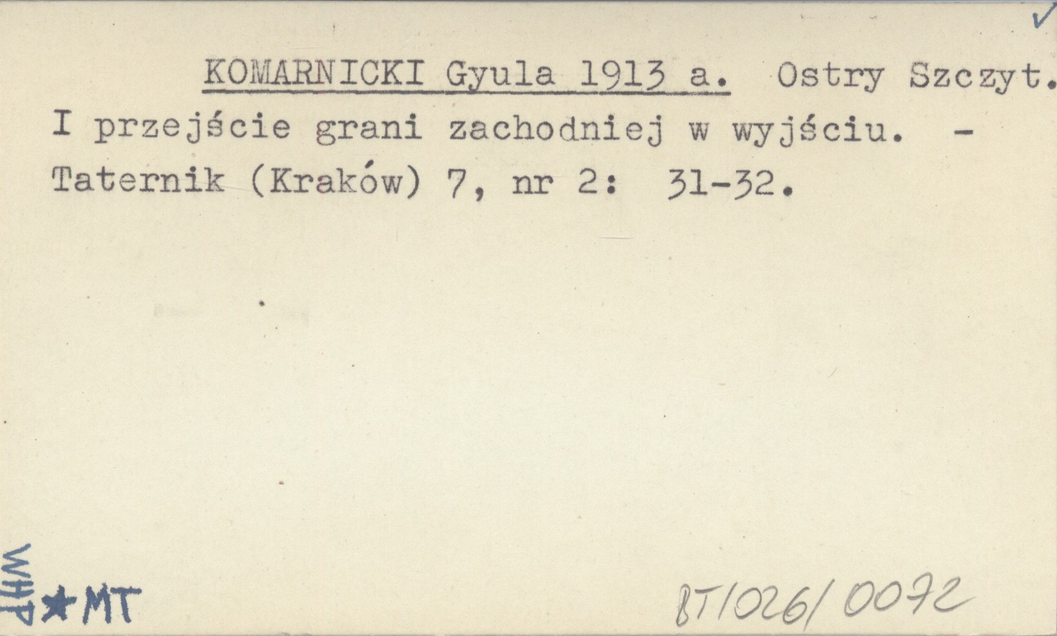 KOMARNICKI Gyula 1913 a Ostry Szczyt. I przejście grani zachodniej w wyjściu.