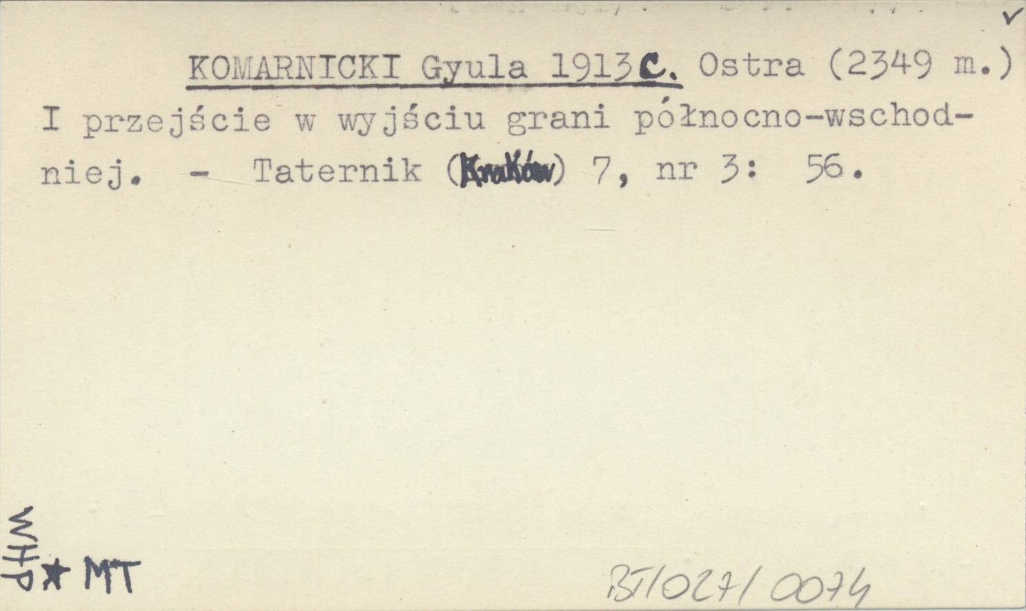 KOMARNICKI Gyula 1913 c Ostra (2349 m.) I przejście w wyjściu grani północno-wschodniej.