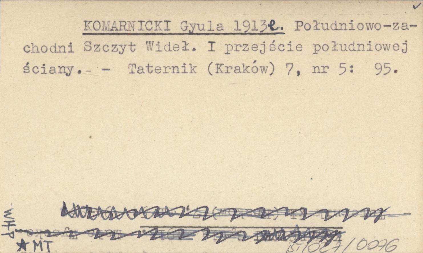 KOMARNICKI Gyula 1913 e Południowo-zachodni Szczyt Wideł. I przejście południowej ściany.