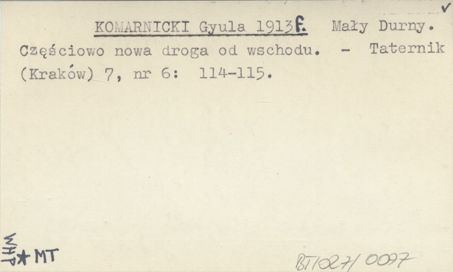 KOMARNICKI Gyula 1913 f Mały Durny. Częściowo nowa droga od wschodu.