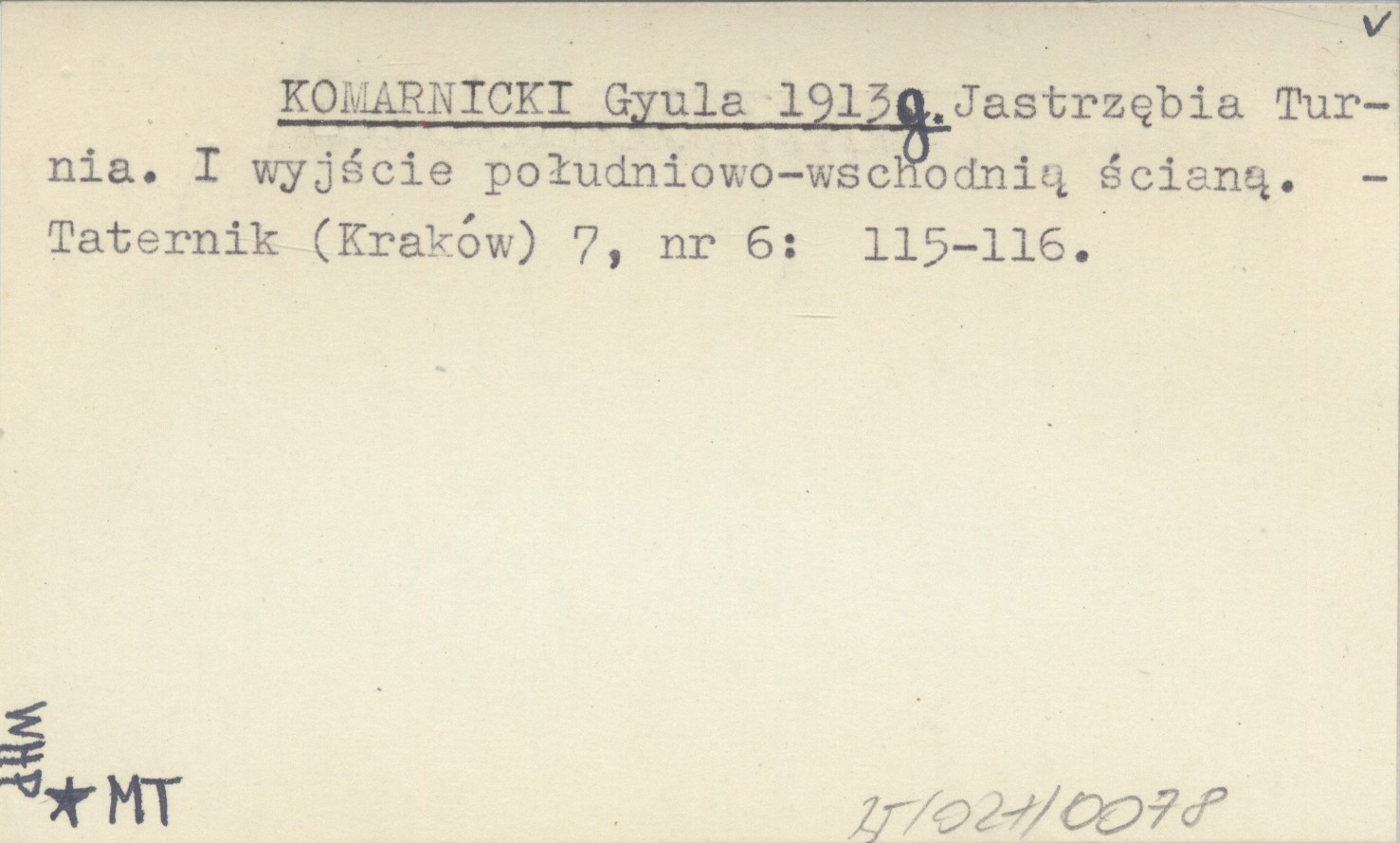 KOMARNICKI Gyula 1913 g Jastrzębia Turnia. I wyjście południowo-wschodnią ścianą.