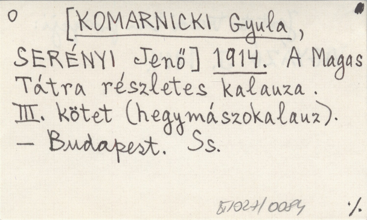 [KOMARNICKI Gyula] SERÉNYI, Jenő. ; 1914 A Magas Tátra részletes kalauza. III. kötet (hegymászokalauz).