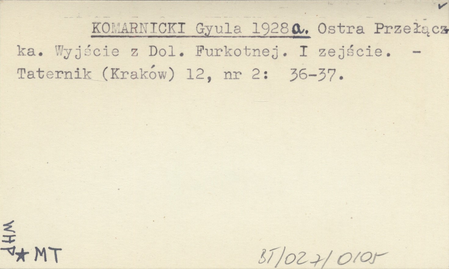 KOMARNICKI Gyula 1928 a Ostra Przełączka. Wyjście z Dol. Furkotnej. I zejście.