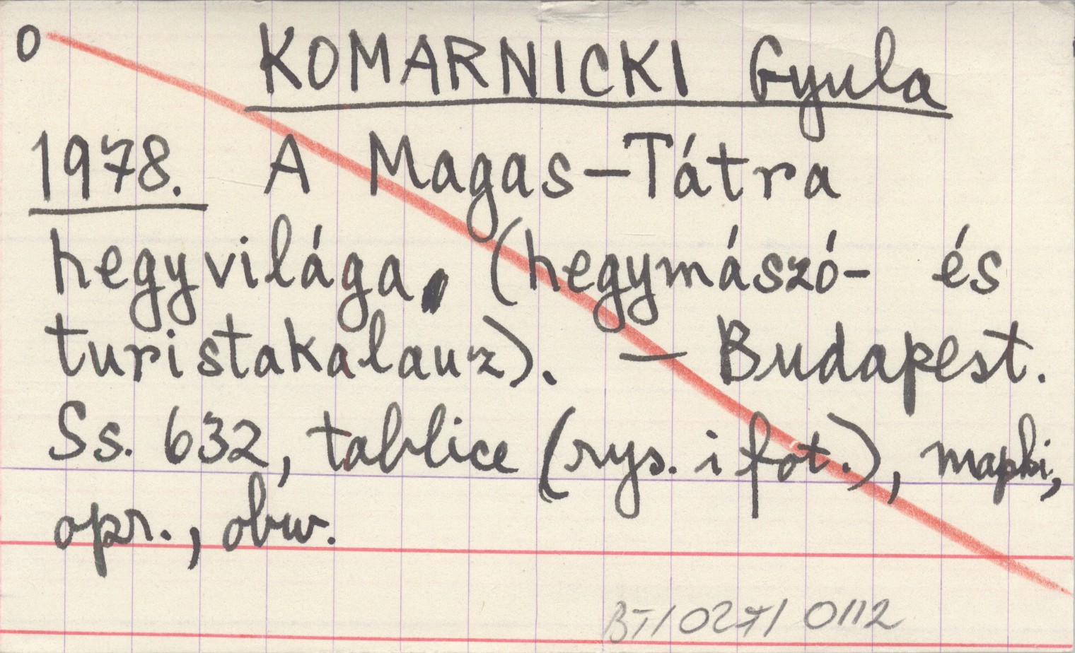 KOMARNICKI Gyula 1978 A Magas-Tátra hegyvilága (hegymászó- és turistakalauz).