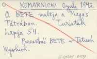 KOMARNICKI Gyula 1942 A BETE multja a Magas Tátrában.
