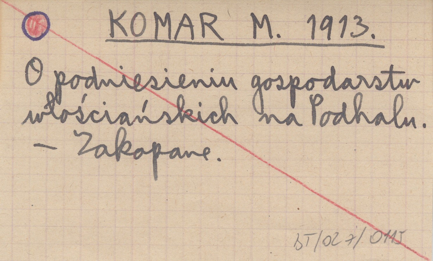 KOMAR M. 1913 O podniesieniu gospodarstw włościańskich na Podhalu.