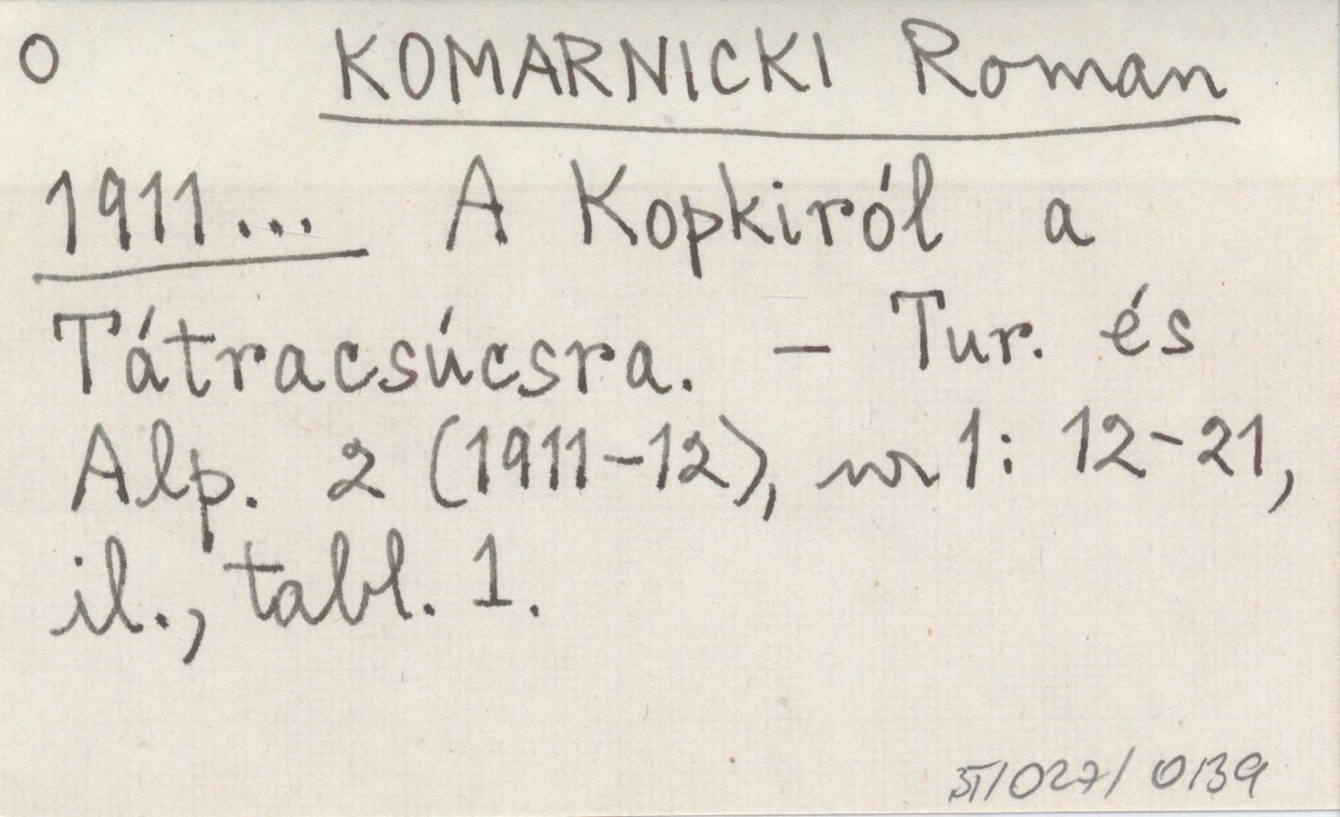 KOMARNICKI Roman 1911... A Kopkiról a Tátracsúcsra.
