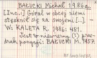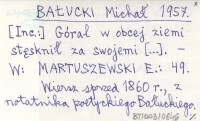 BAŁUCKI Michał 1957 [Inc.:] Góral w obcej ziemi stęsknił za swojemi [...].