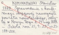 KOMINKOWSKI Stanisław 1888 Sprawozdanie z konferencyi okręgowej nauczycieli powiatu nowotarskiego, odbytej w Nowym Targu d. 14 maja 1888.