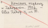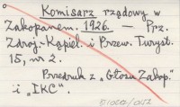 Komisarz rządowy T. K. U. w Zakopanem. 1926