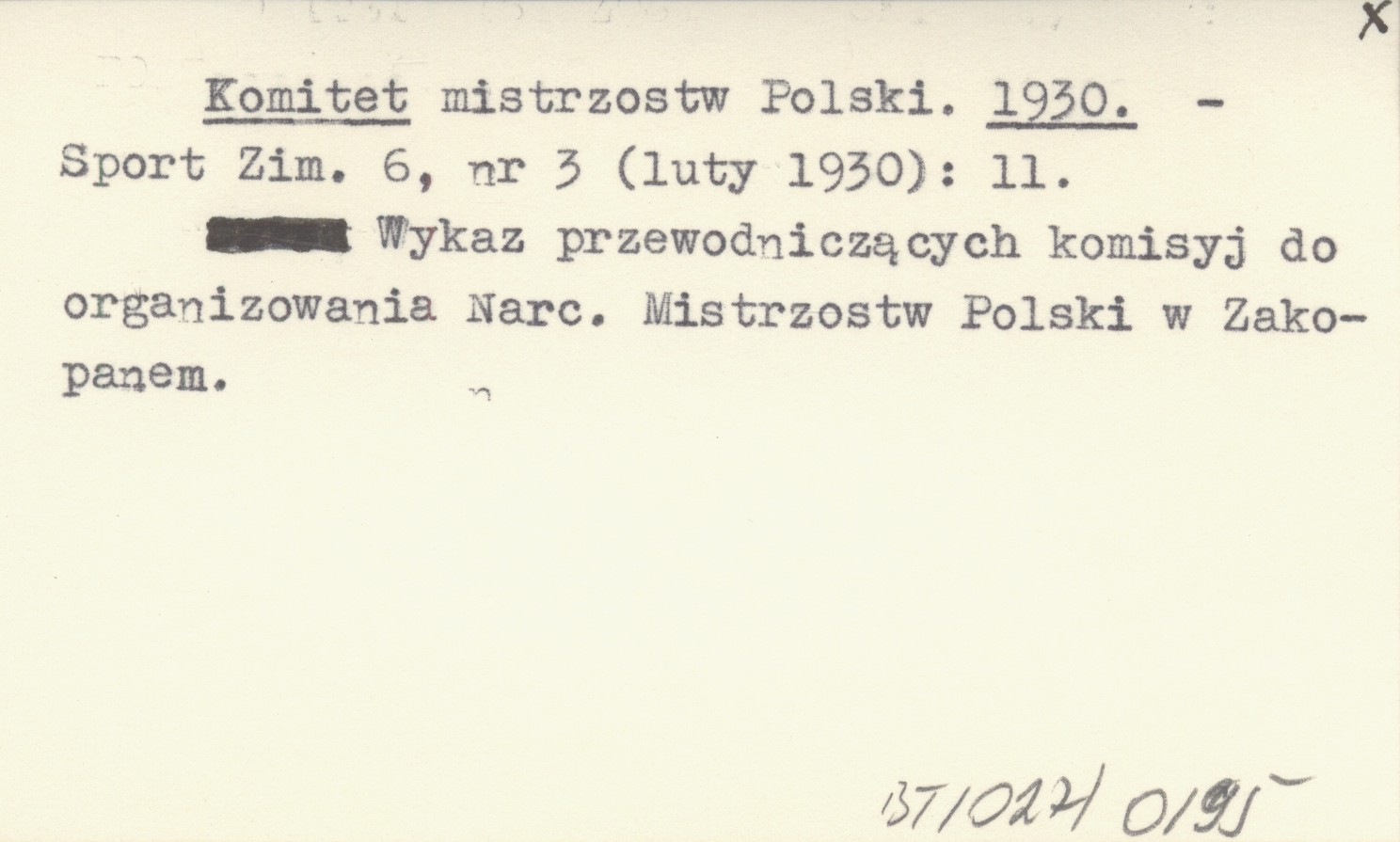 Sport Zimowy, 6, nr 3 (II 1930): 11. Wykaz przewodniczących komisyj do organizowania Narc. Mistrzostw Polski w Zakopanem.