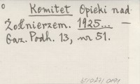 Komitet Opieki nad Żołnierzem. 1925...