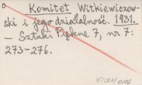 Komitet Witkiewiczowski i jego działalność. 1931