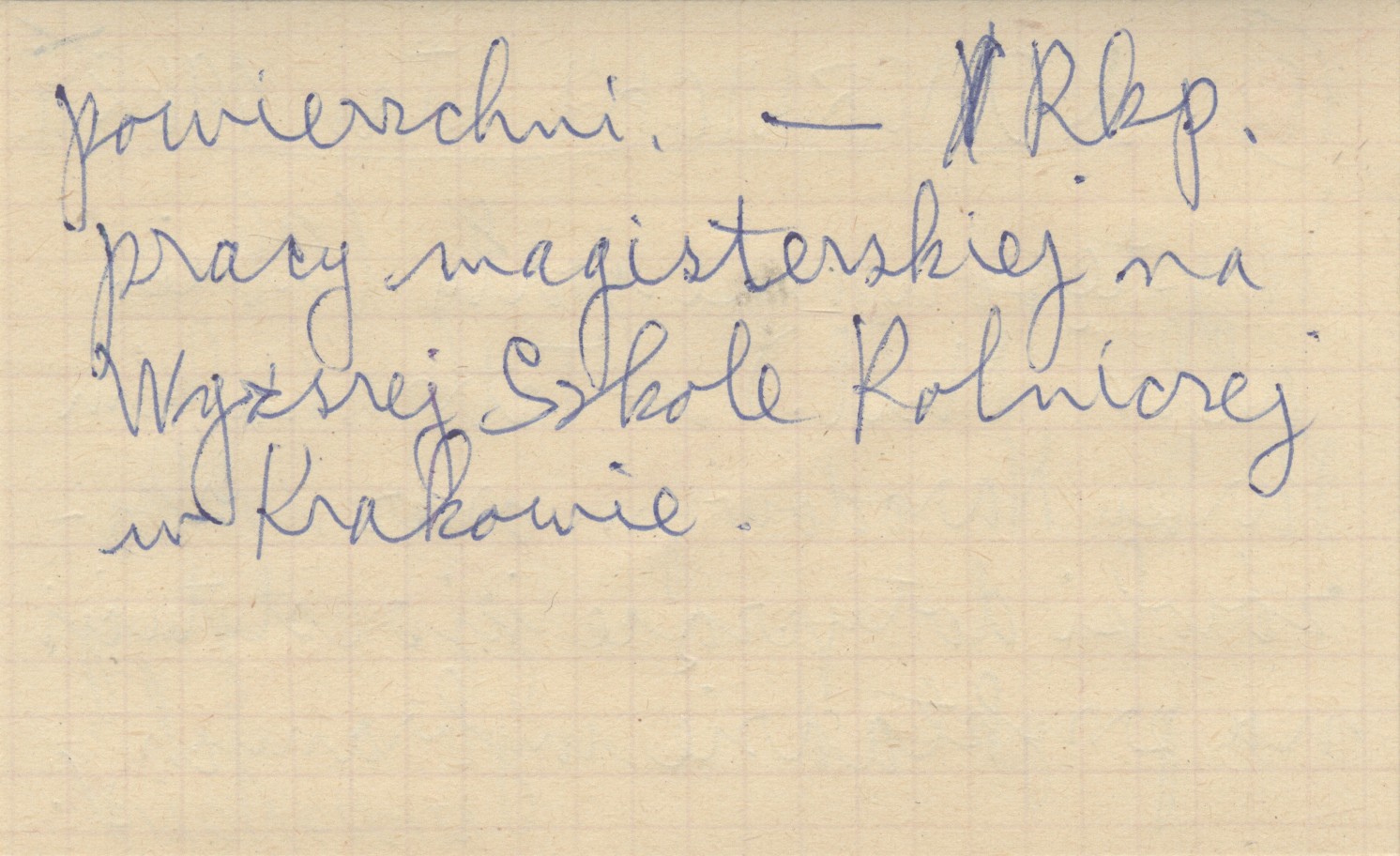 , Rkp. pracy magisterskiej na Wyższej Szkole Rolniczej w Krakowie.