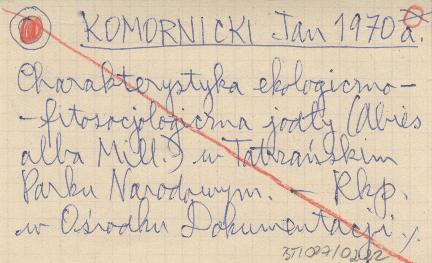 KOMORNICKI Jan 1970 a Charakterystyka ekologiczno-fitosocjologiczna jodły (Abies alba Mill.) w Tatrzańskim Parku Narodowym.