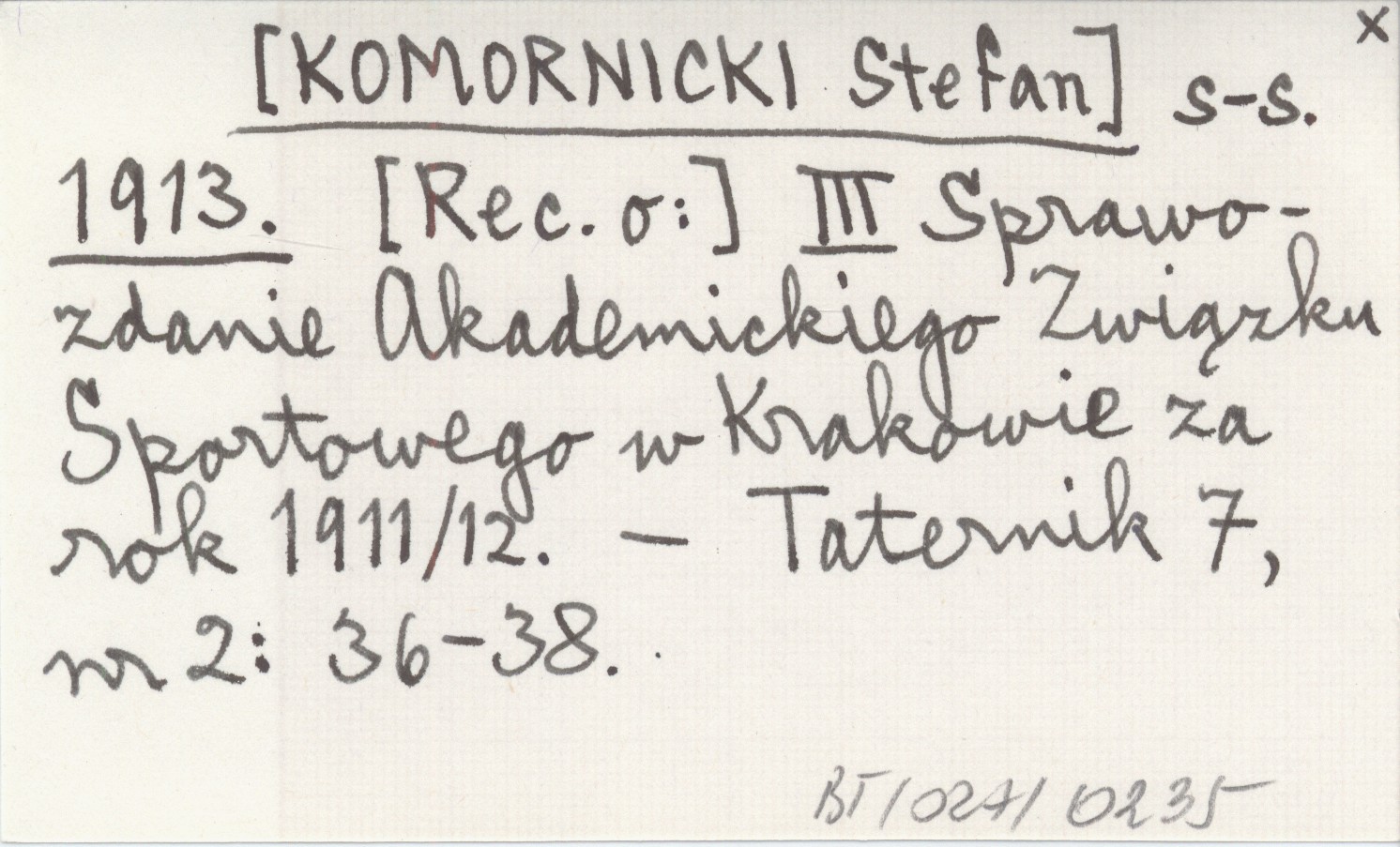 s-s. [KOMORNICKI Stefan] 1913 III Sprawozdanie Akademickiego Związku Sportowego w Krakowie za rok 1911/12.