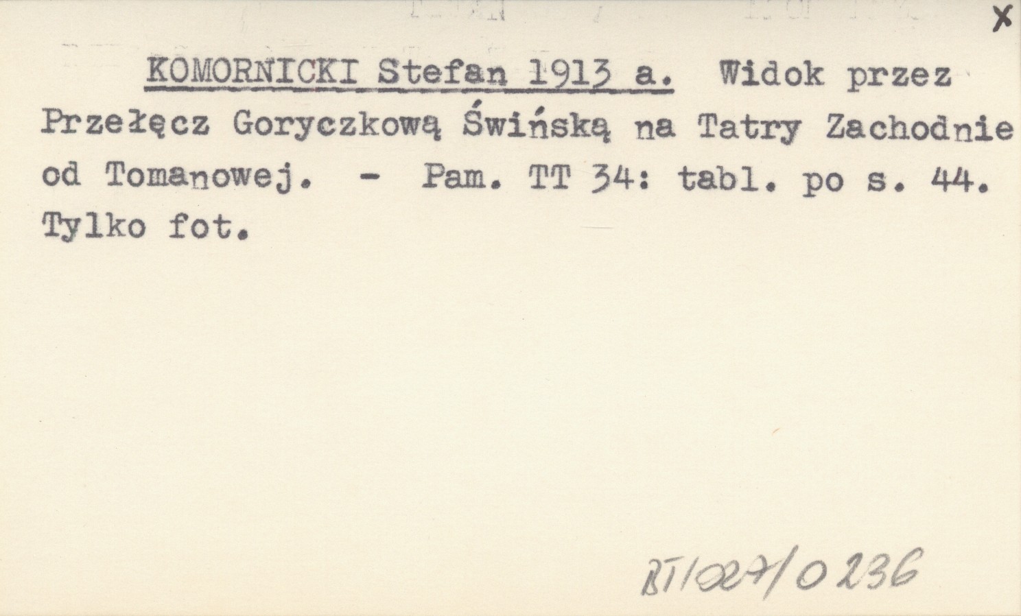 KOMORNICKI Stefan 1913 a Widok przez Przełęcz Goryczkową Świńską na Tatry Zachodnie od Tomanowej.