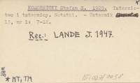 KOMORNICKI Stefan LANDE, Jerzy. ; 1930 Zawiadomienie.