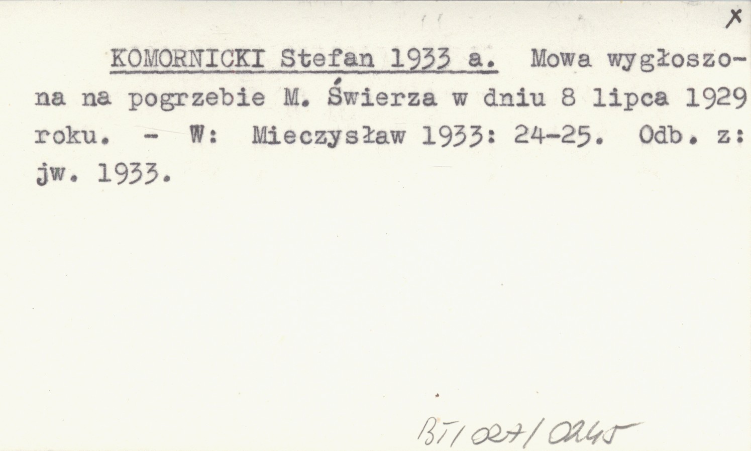 KOMORNICKI Stefan 1933 a Mowa wygłoszona na pogrzebie M. Świerza w dniu 8 lipca 1929 roku.