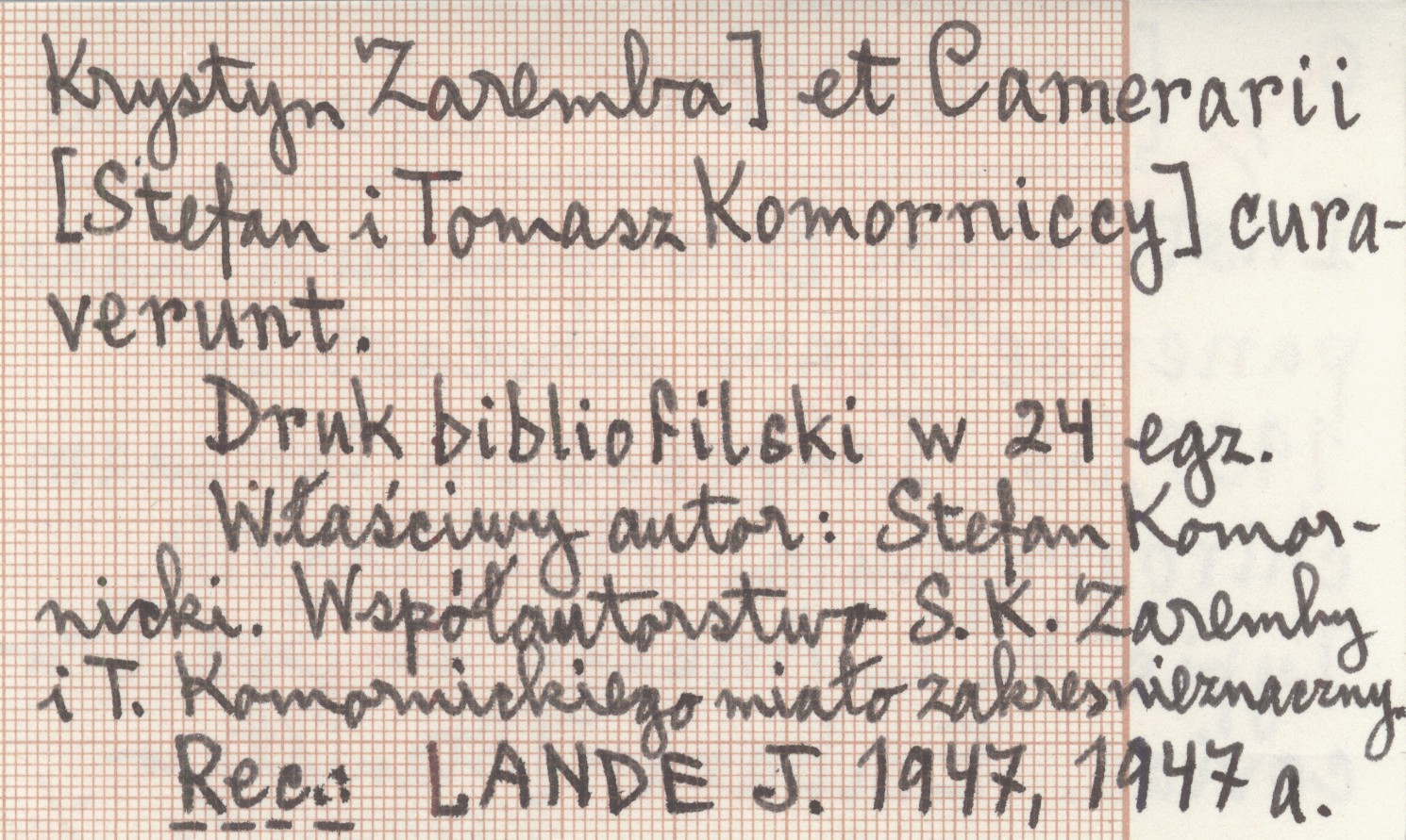 , Druk bibliofilski w 24 egz. Właściwy autor: Stefan Komornicki. Współautorstwo S. K. Zaremby i T. Komornickiego miało zakres nieznaczny. REC: LANDE J. 1947, 1947 a
