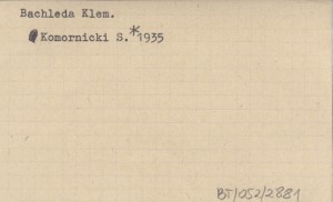 KOMORNICKI Stefan 1935 Bachleda Klemens (1849-1910).