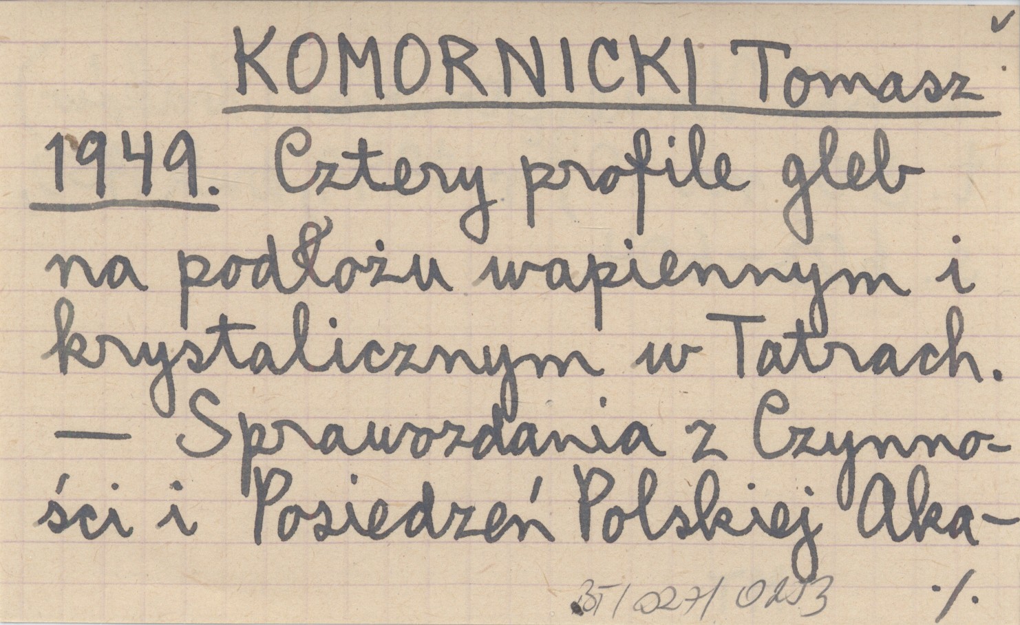 KOMORNICKI Tomasz 1949 Cztery profile gleb na podłożu wapiennym i krystalicznym w Tatrach.