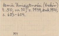 Sprawozdanie z Czynności i Posiedzeń Polskiej Akademii Umiejętności (Kraków) , T. 50, nr 10: 603-604, r. 1949, druk 1950.