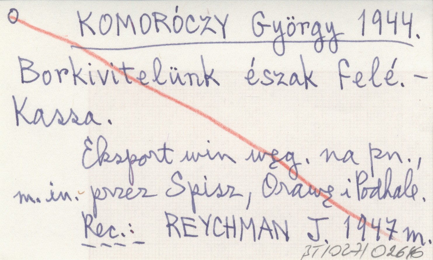 Kassa , Eksport win węg. na pn., m.in. przez Spisz, Orawę i Podhale. REC: REYCHMAN J. 1947 m