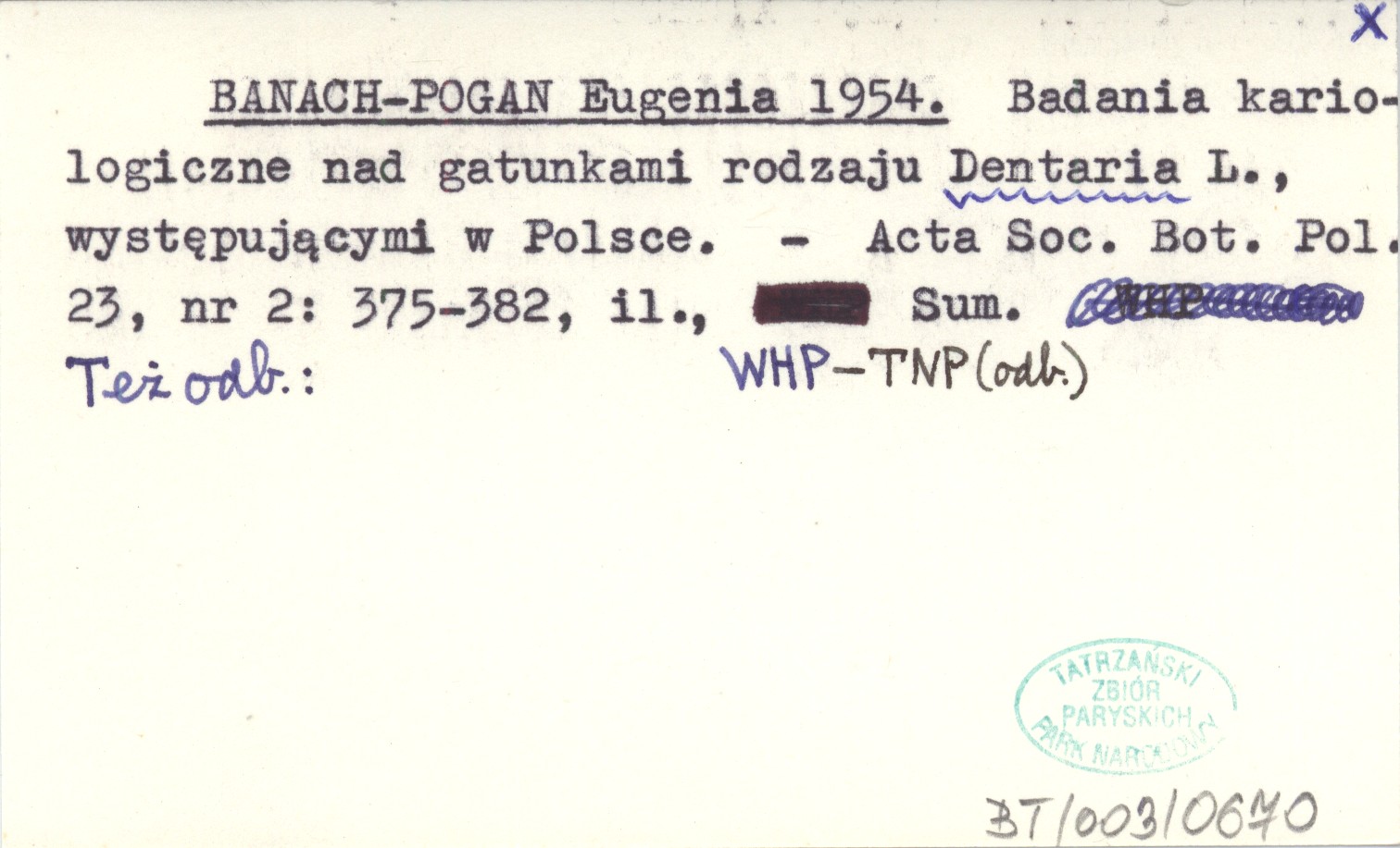 BANACH-POGAN Eugenia 1954 Badania kariologiczne nad gatunkami rodzaju Dentaria L., występującymi w Polsce.