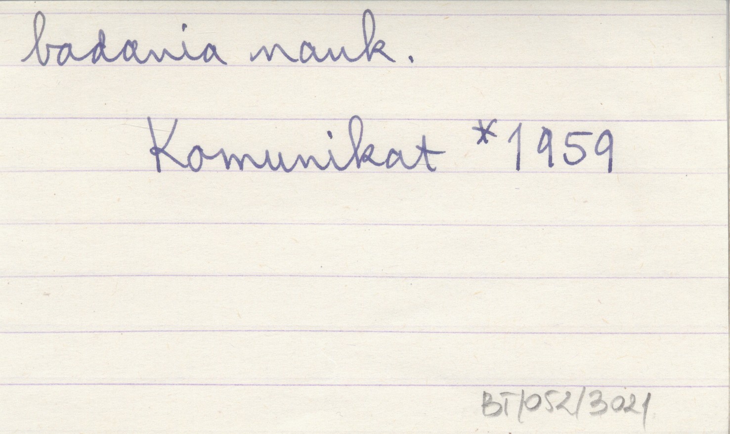 Komunikat Dyrekcji Tatrzańskiego Parku Narodowego w sprawie warunków wykonywania prac naukowych na terenie Tatr Polskich. 1959