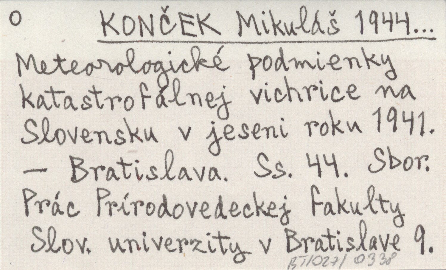 KONČEK Mikuláš 1944... Meteorologické podmienky katastrofálnej vichrice na Slovensku v jeseni roku 1941.