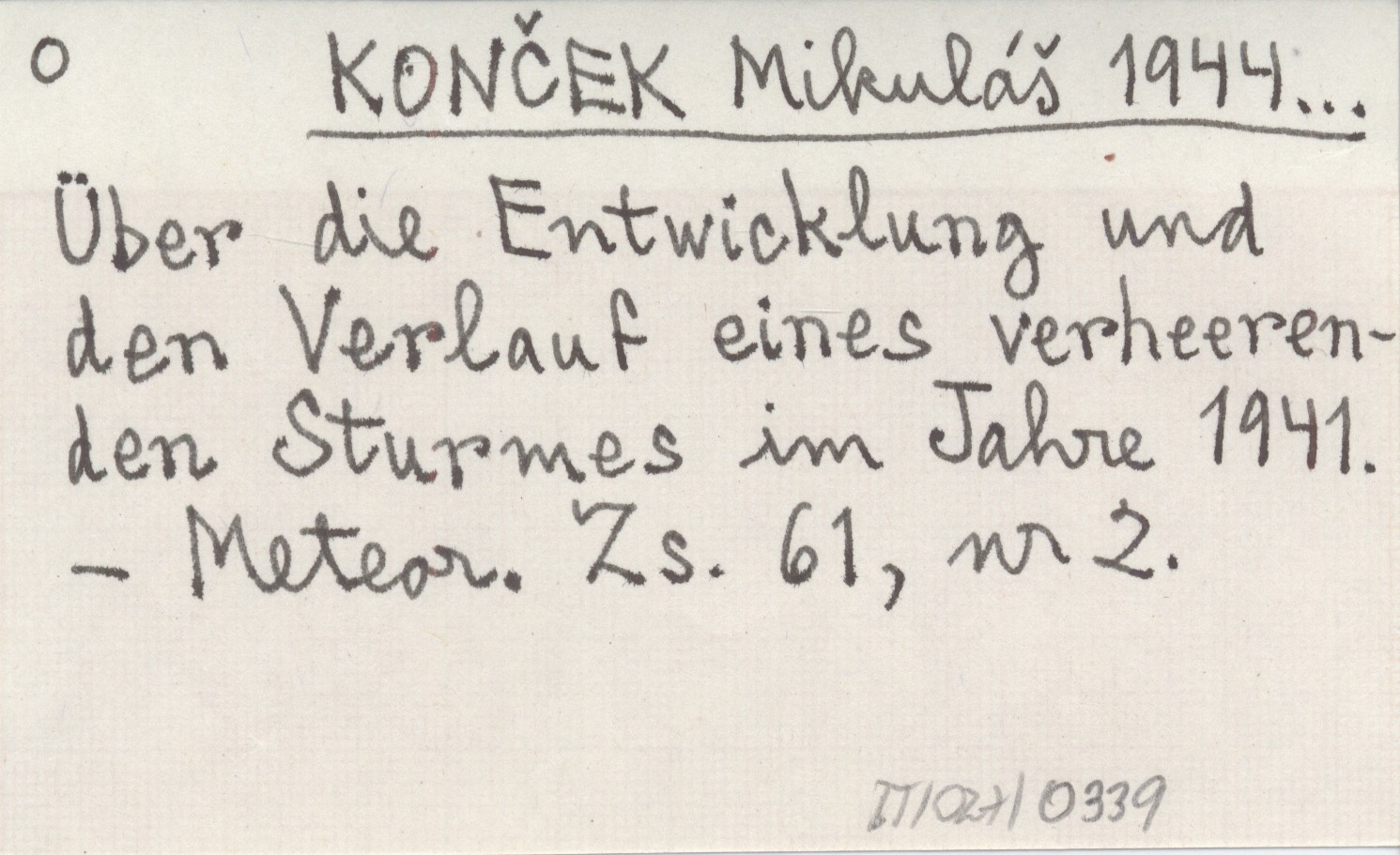 KONČEK Mikuláš 1944... Über die Entwicklung und den Verlauf eines verheerenden Sturmes im Jahre 1941.