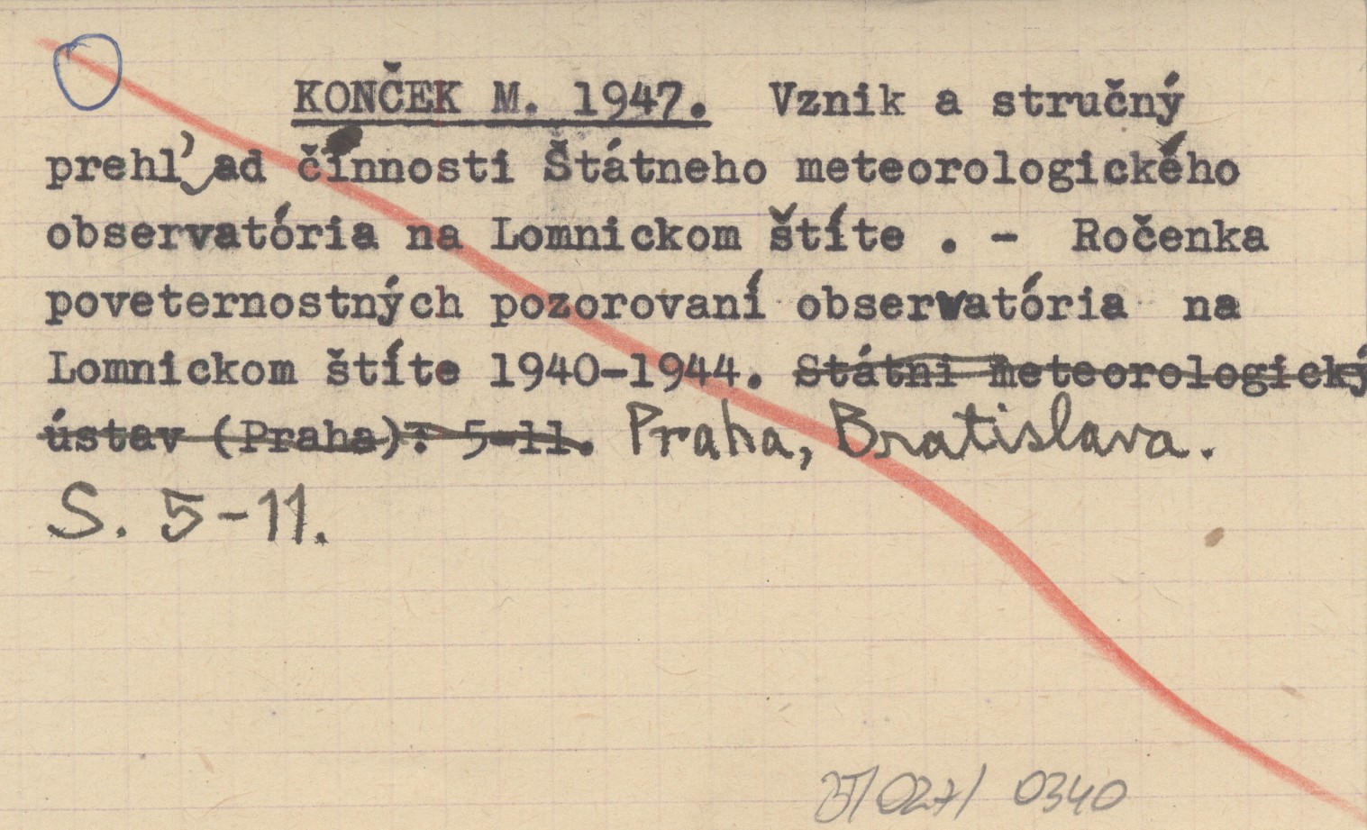 Ročenka poveternostných pozorovaní observatória na Lomnickom ątíte 1940-1944 (Praha ; Bratislava ;) , S. 5-11.