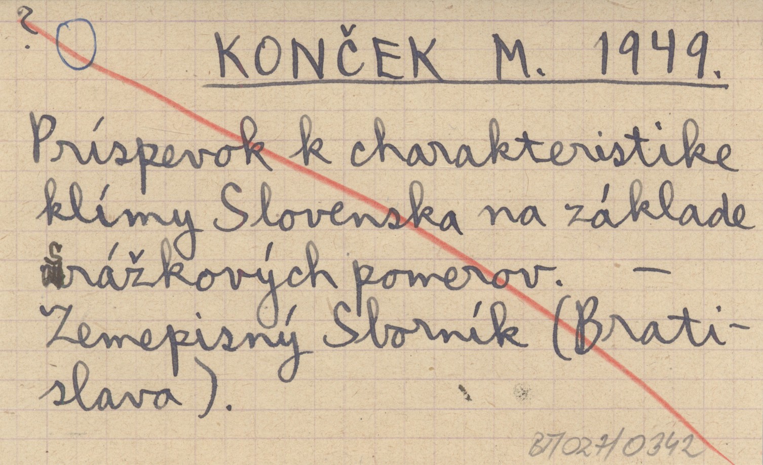 KONČEK M. 1949 Príspevok k charakteristike klímy Slovenska na základe srážkových pomerov.