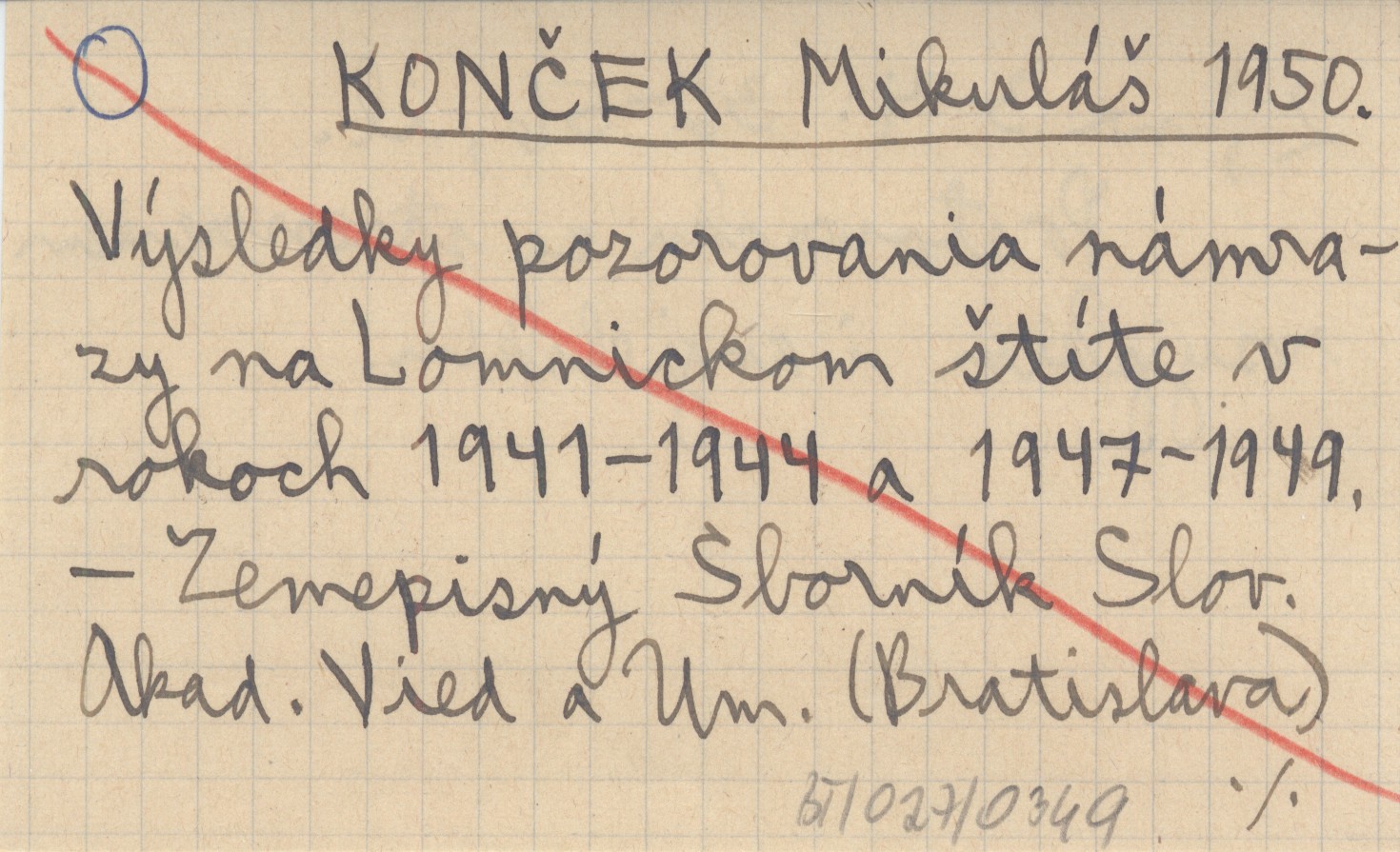 KONČEK Mikuláš 1950 Výsledky pozorovania námrazy na Lomnickom štíte v rokoch 1941-1944 a 1947-1949.