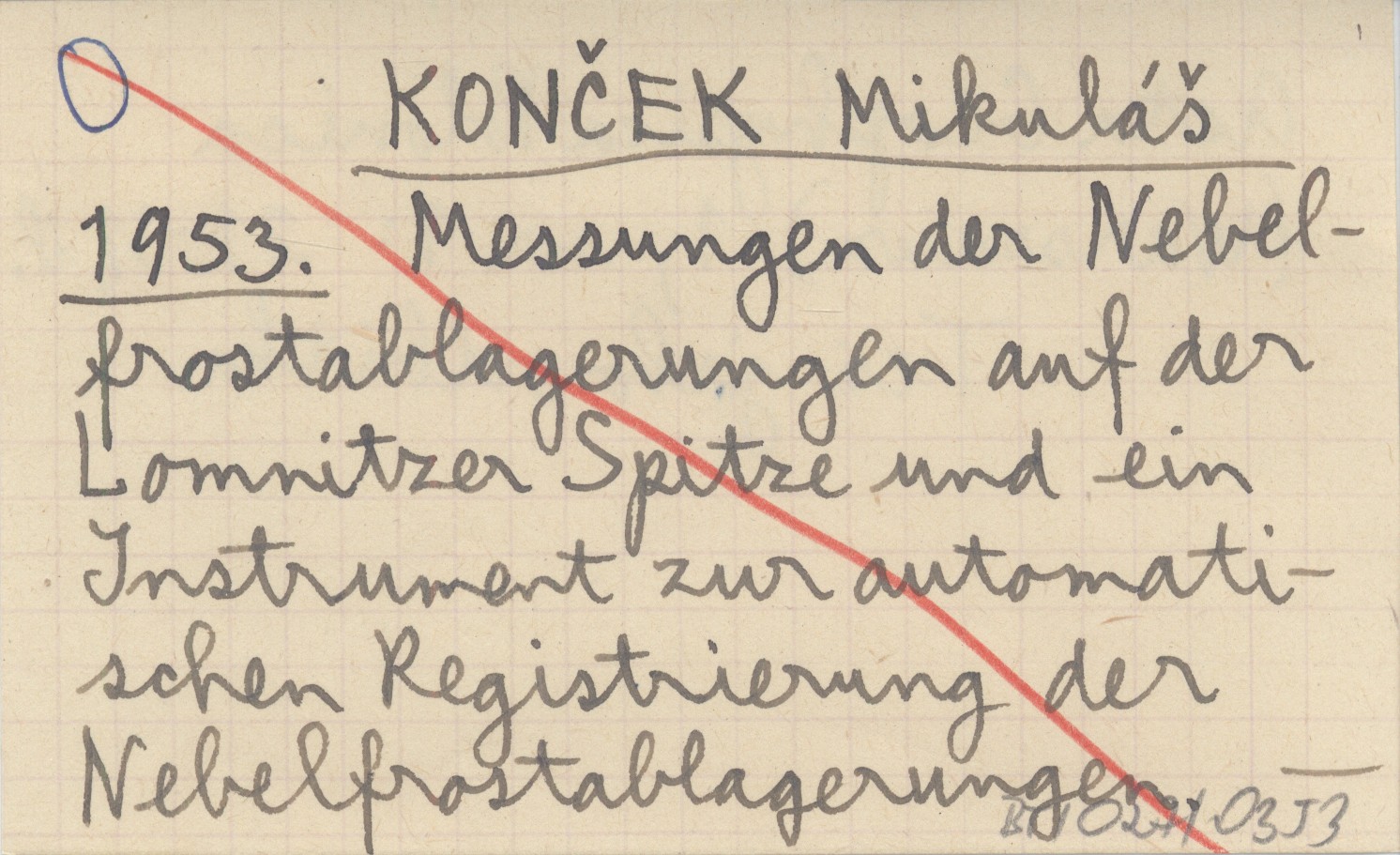 KONČEK Mikuláš 1953 Messungen der Nebelfrostablagerungen auf der Lomnitzer Spitze und ein Instrument zur automatischen Registrierung der Nebelfrostablagerungen.