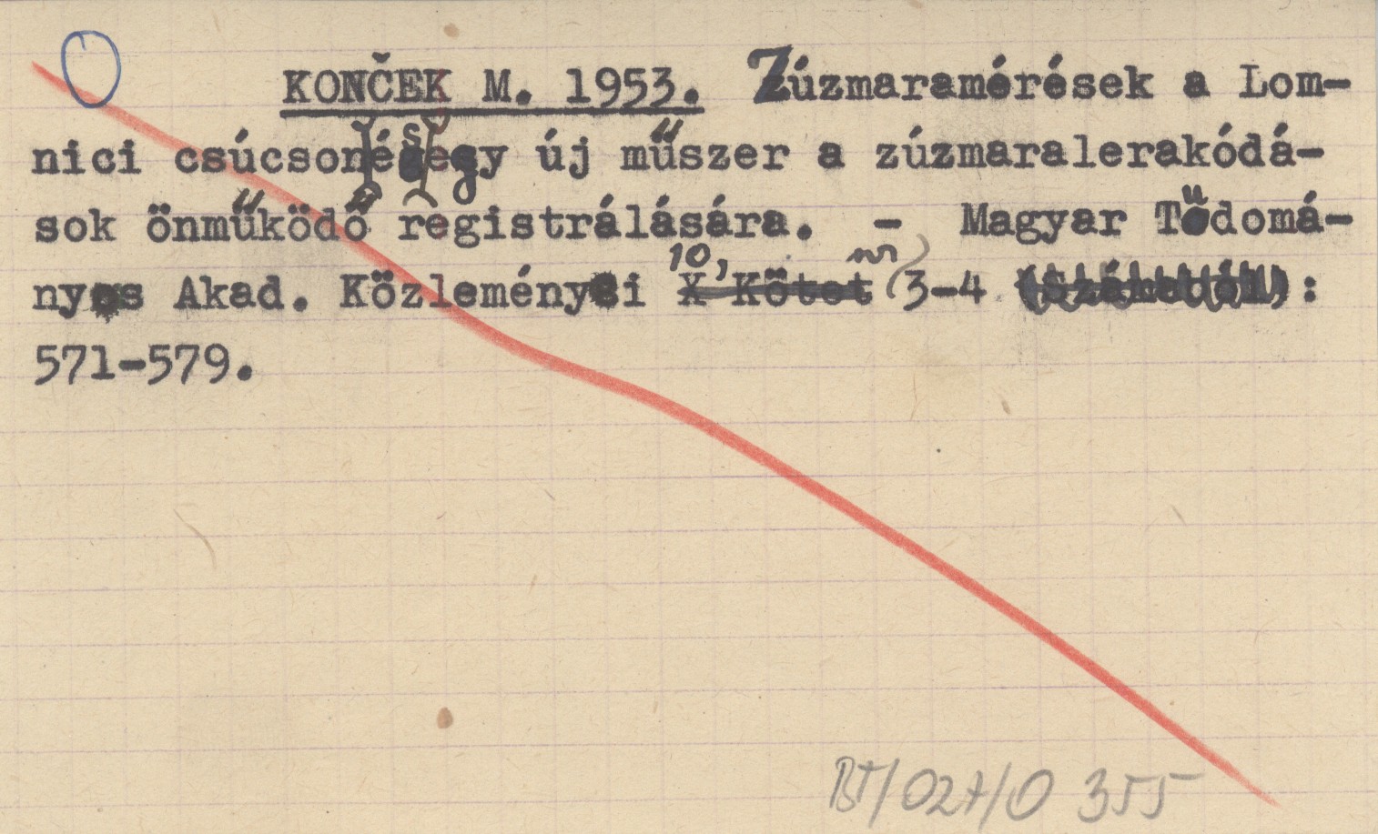 KONČEK M. 1953 Zúzmaramérések a Lomnici csúcson és egy új műszer a zúzmaralerakódások önműködő registrálására.